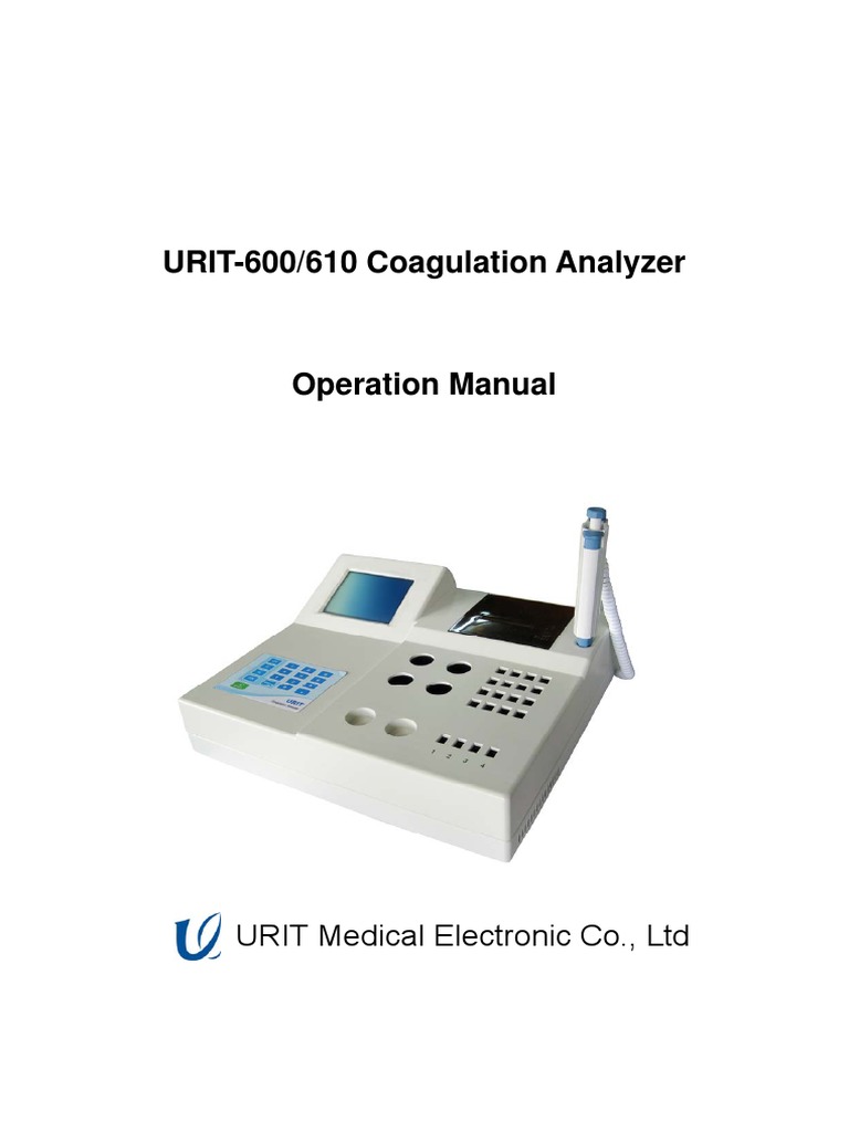 Urit 610 User Manual Coagulation Analyzer Troubleshooting Menu